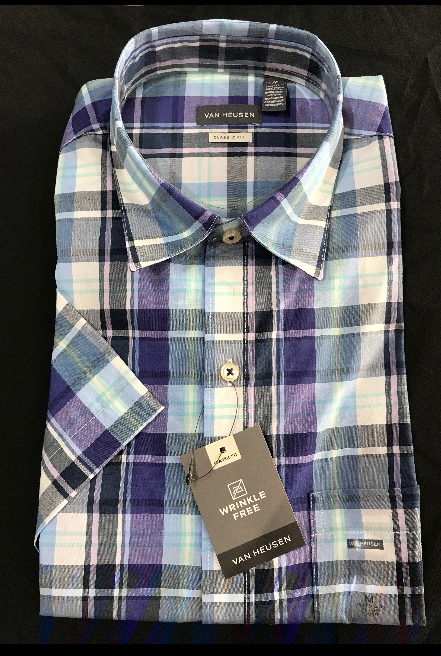Van Heusen Mens Short Sleeve Shirt • Blue, Purple and Navy Plaid and Green, Blue and Black Plaid